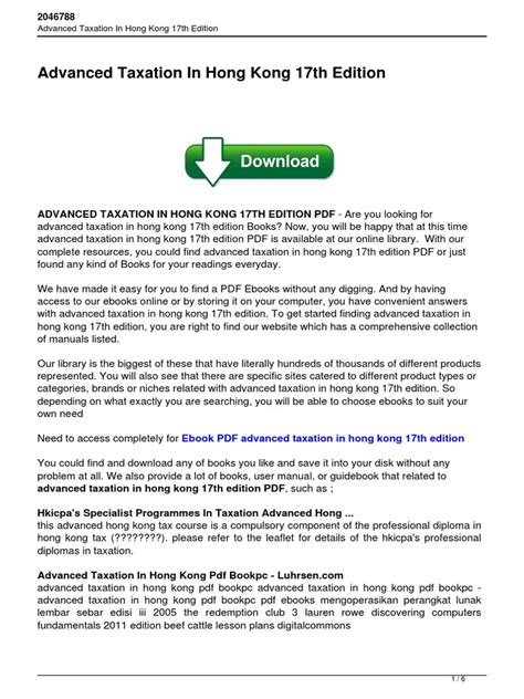 Download Advanced Taxation In Hong Kong Pdf Doc